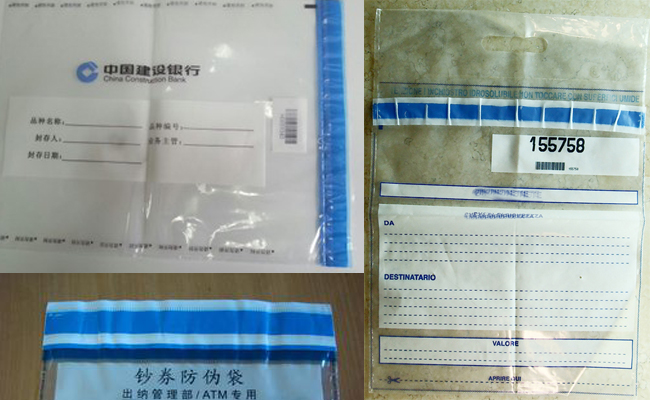 作用:除了增加强度的档案、重要证据、银行个人资料、密封实现更好的重量分配从而减少损坏的产品、资料泄密。此外,该保安是防水且一旦袋被撕开降不回复原型,泄漏被可靠地防止,以及较好的经济性,通过高品质/强度和可用性而实现的,从而减少塑料袋的浪费降到最低。保安效果如下: